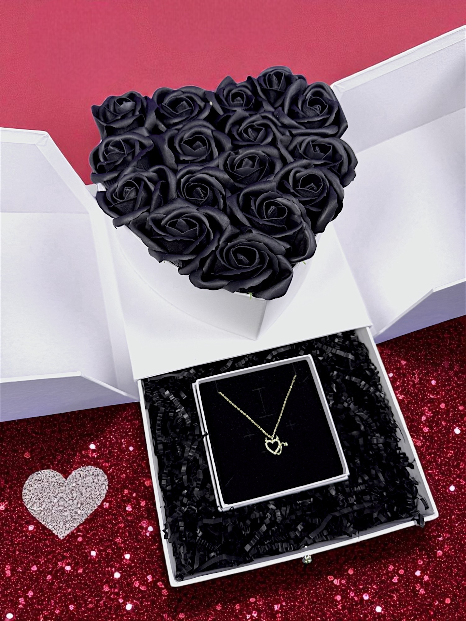 Podaruj bliskiej osobie coś więcej niż zwykły upominek – box prezentowy serce z różami mydlanymi i naszyjnikiem srebrnym to prezent pełen emocji i elegancji. Doskonały dla każdej kobiety, która ceni piękno, subtelność i wyjątkowe gesty.