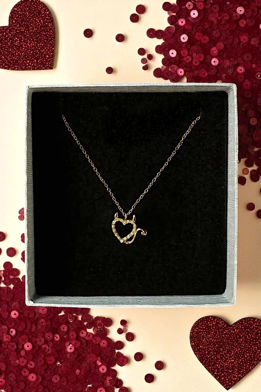 ✔️ Symboliczna zawieszka w kształcie diabelskiego serca z cyrkoniami – idealna na wyjątkowe okazje.