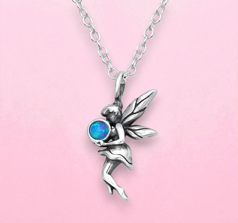 - naszyjnik srebrny próby 925 z zawieszką w kształcie wróżki z opalem